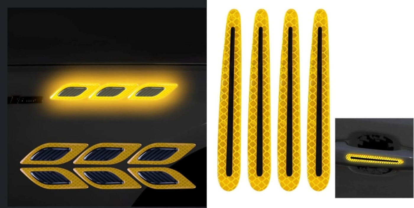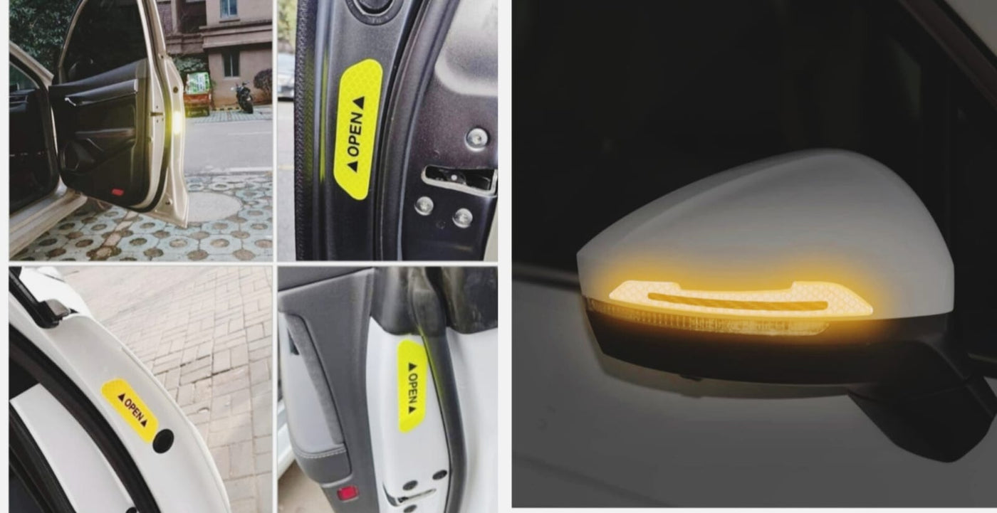 Our Car Reflective Sticker Combos are designed to provide complete protection and visibility for you and your passengers. This combo includes high-quality reflective stickers that enhance your car’s safety, from improved door visibility at night to increased mirror reflectivity. Made from durable, weatherproof materials, the bundle ensures long-lasting performance in all conditions. Easy to install with peel-and-stick adhesive, this comprehensive set also includes essential emergency tools, giving you peace of mind and readiness in every situation