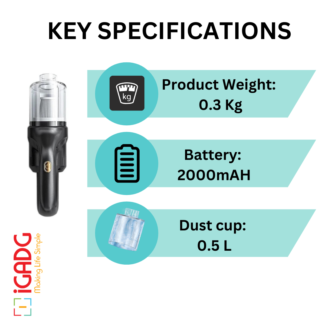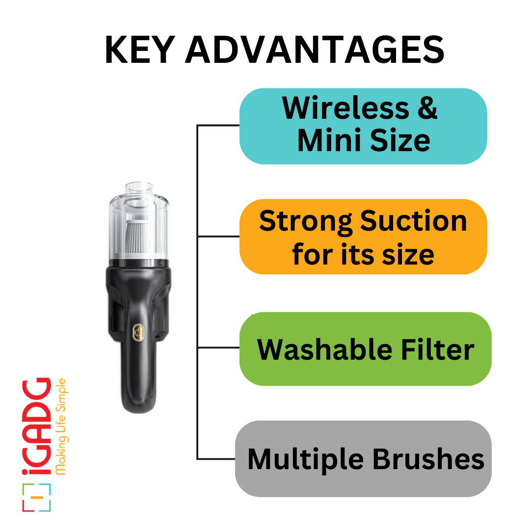 Experience a new era of cleaning convenience with the iGADG Wireless Portable Small Vacuum Cleaner. Keep your living space and car spotless effortlessly. Order yours now and revolutionize your cleaning routine!