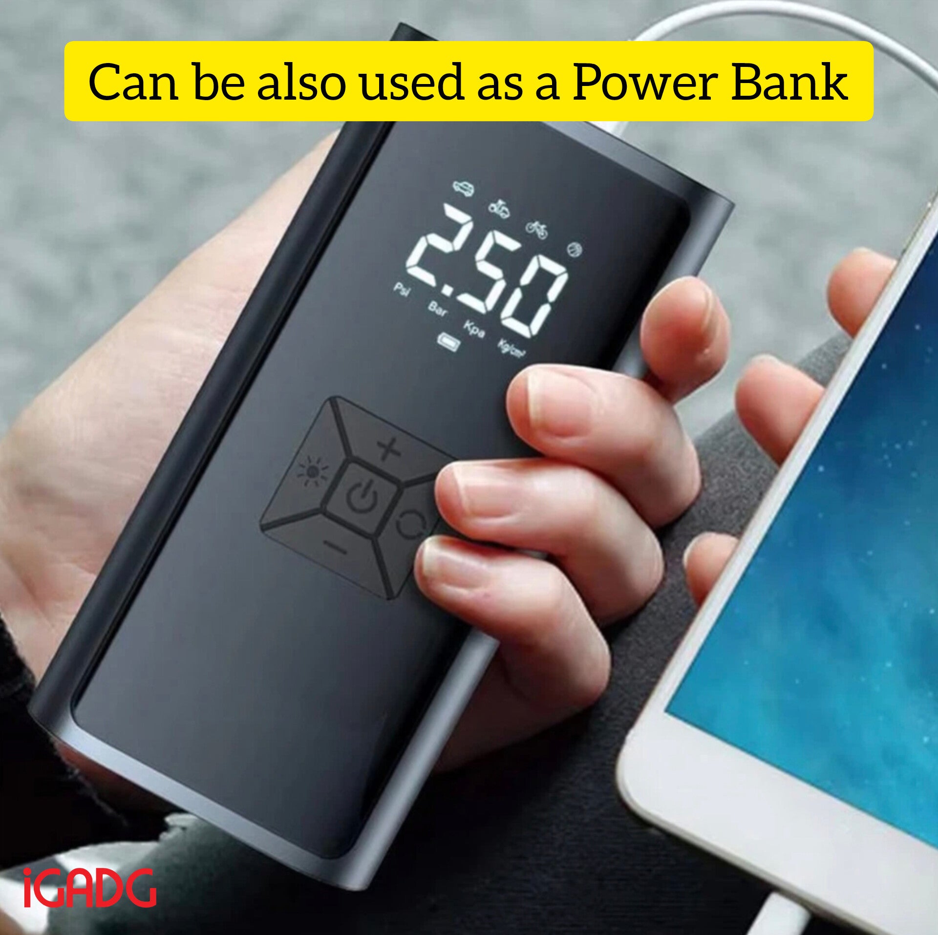 iGADG Dual Power Wired & Wireless Mini Tyre Inflator | Car & Bike with Auto-Shut | Works on 12v & Battery | Comes with EVA hard case