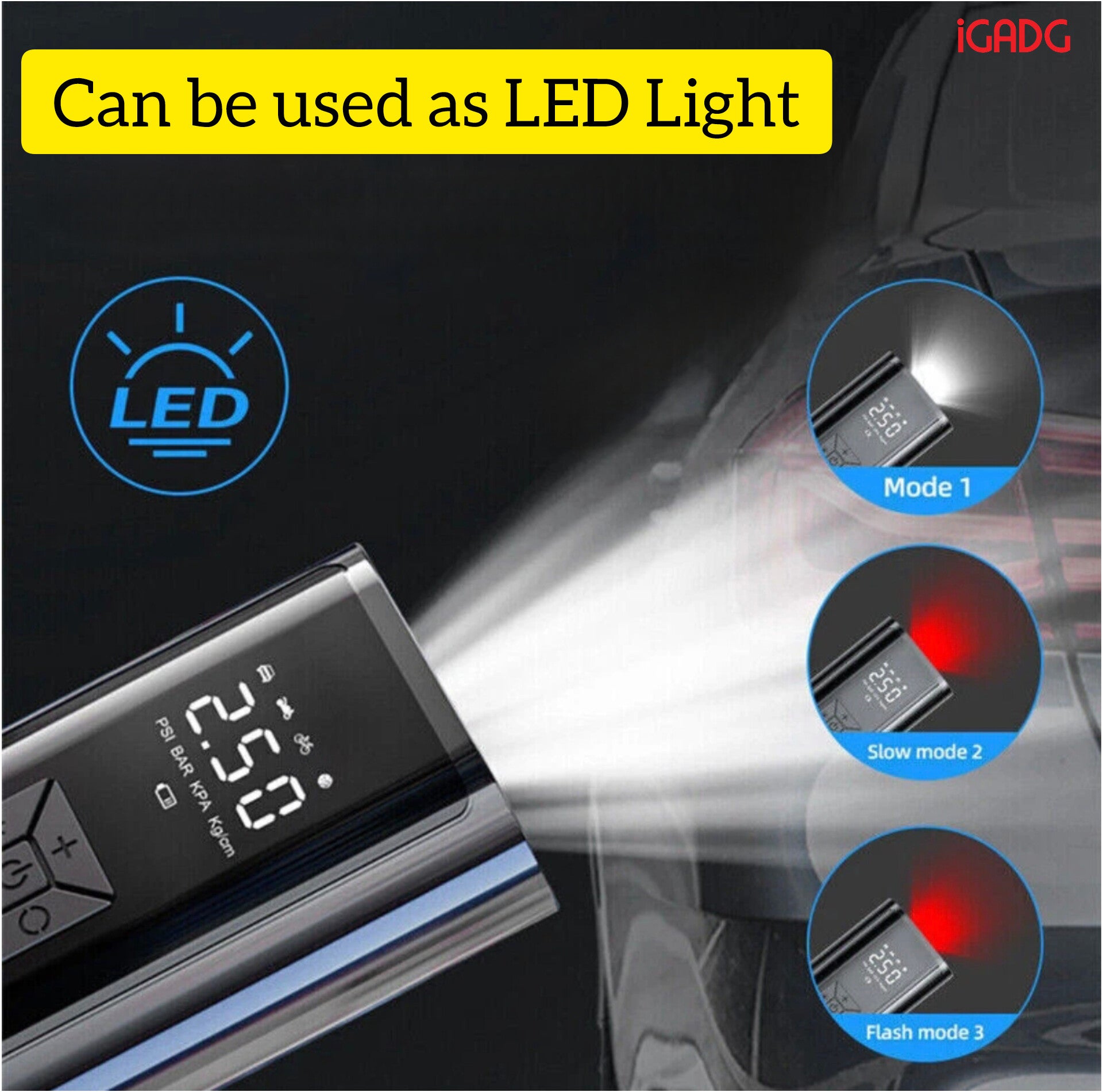Equipped with a built-in LED emergency light, you can inflate tyres safely in low-light situations—whether you're on the roadside or in a dark garage.